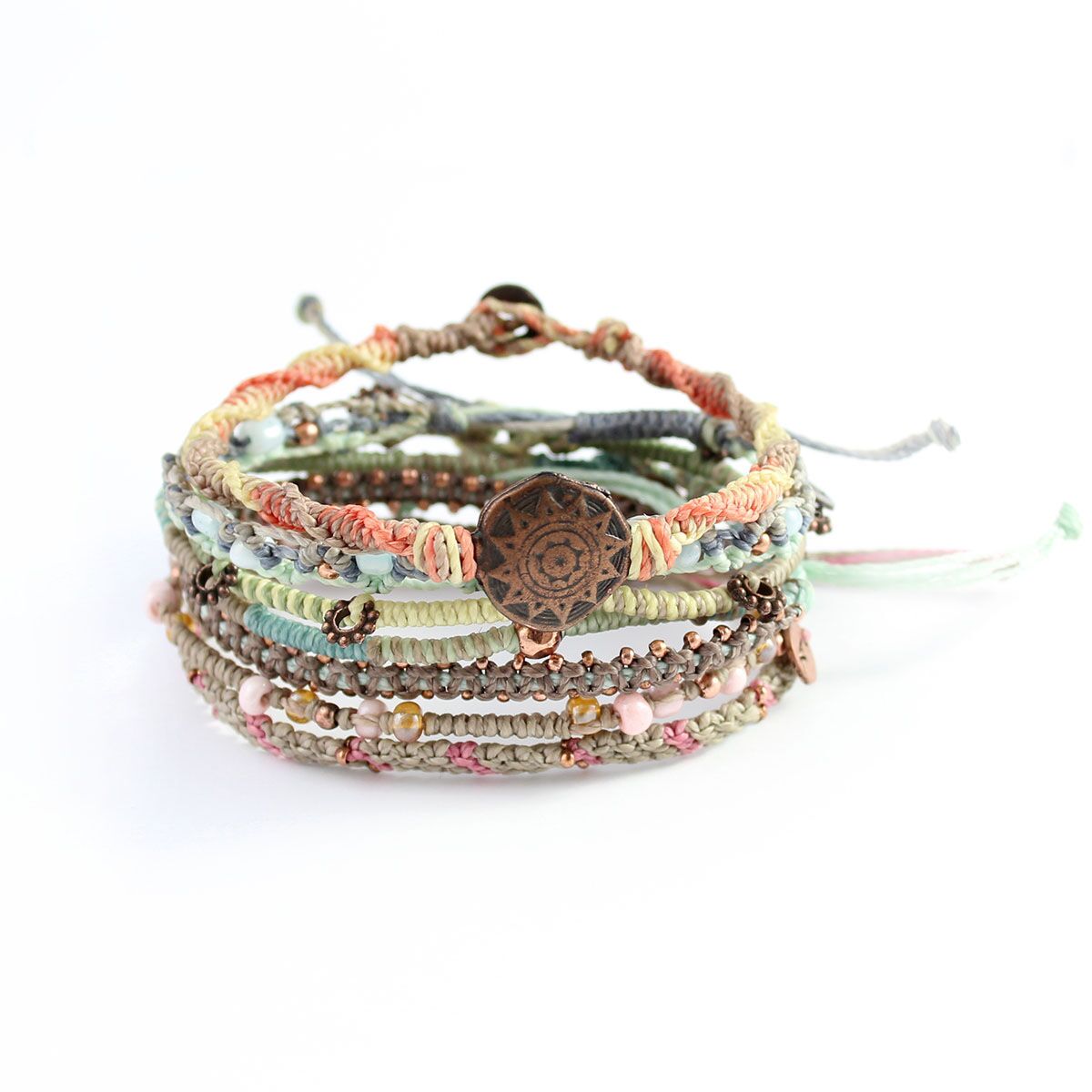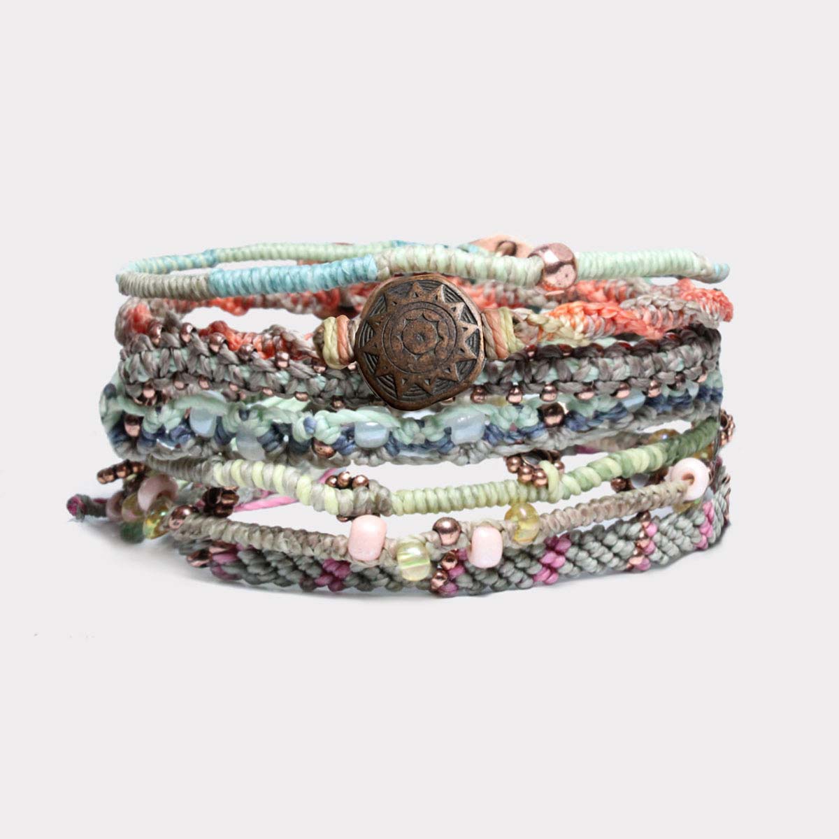 Detta armbandsset berättar hur jorden kom till. Varje band har sin egen unika betydelse och del i historien. De symboliserar jorden, solen, stjärnorna och månen, följt av vatten och vind, växter och djur, människor och till sist kärleken.